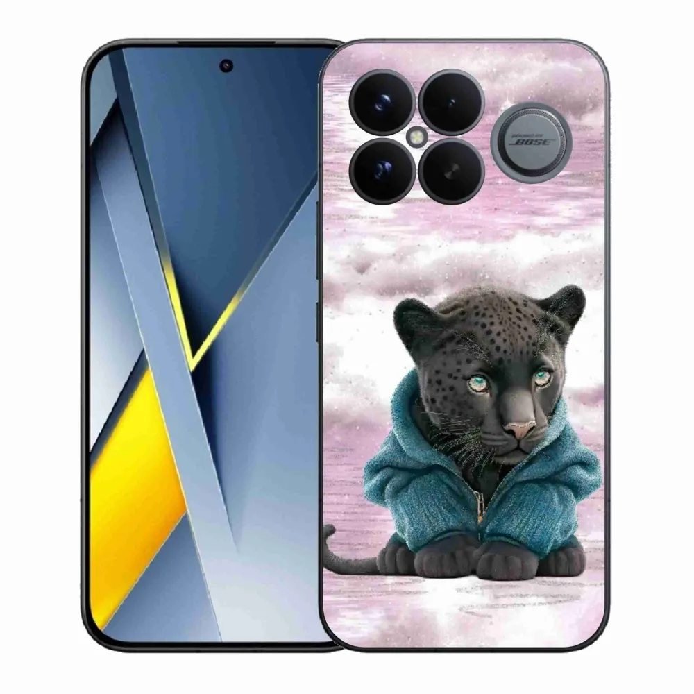 Pouzdro se šelmou na Xiaomi Poco F8 Ultra - černý panter ve svetru poskytuje všechny výhody gelových krytů, a to v zajímavém designu.