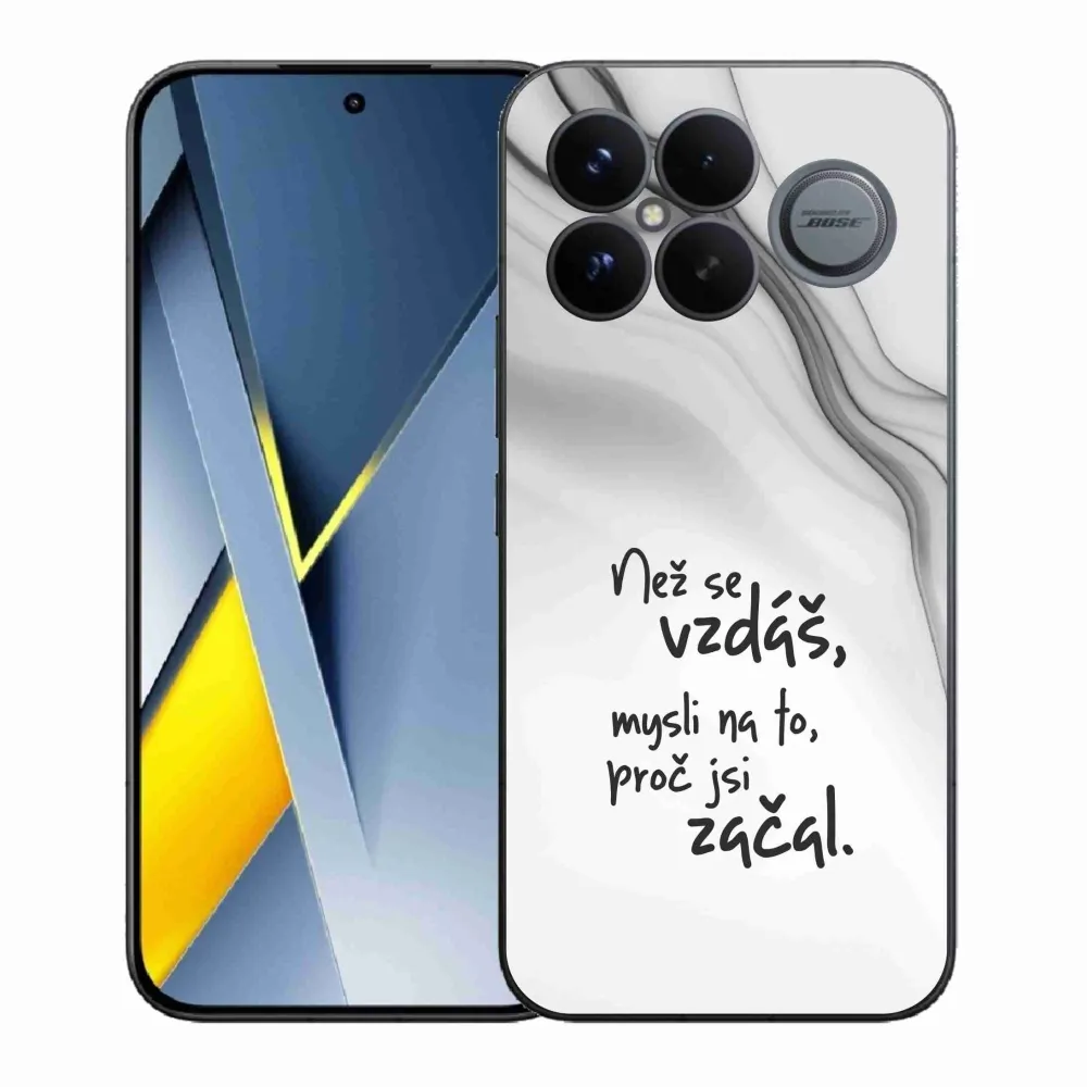Pouzdro, na kterém je zajímavý text má název - citát 2 bílé pozadí a je na Xiaomi Poco F8 Ultra poskytuje všechny výhody gelových krytů, a to v zajímavém designu.