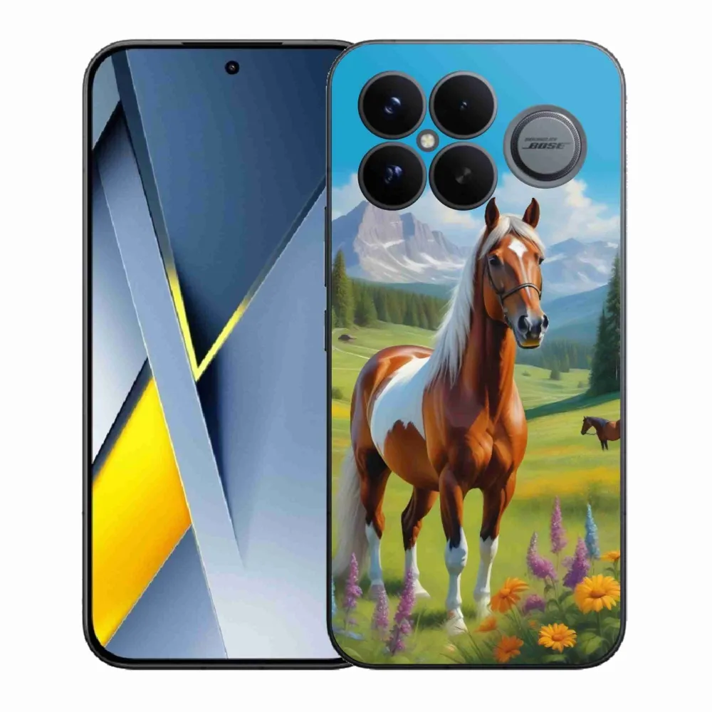 Pouzdro s motivem koně na Xiaomi Poco F8 Ultra - kůň na louce poskytuje všechny výhody gelových krytů, a to v zajímavém designu.