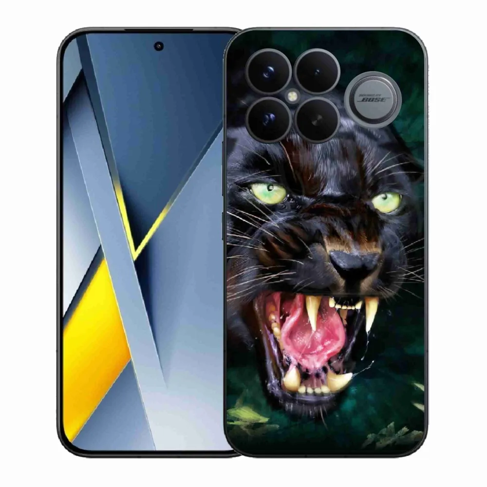 Pouzdro se šelmou na Xiaomi Poco F8 Ultra - rozzuřený černý panter poskytuje všechny výhody gelových krytů, a to v zajímavém designu.