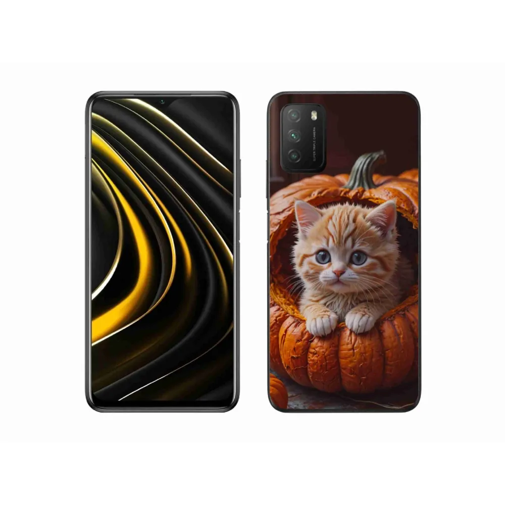 Pružný gelový obal mmCase s obrázkem na Xiaomi Poco M3 - kotě a dýně 2