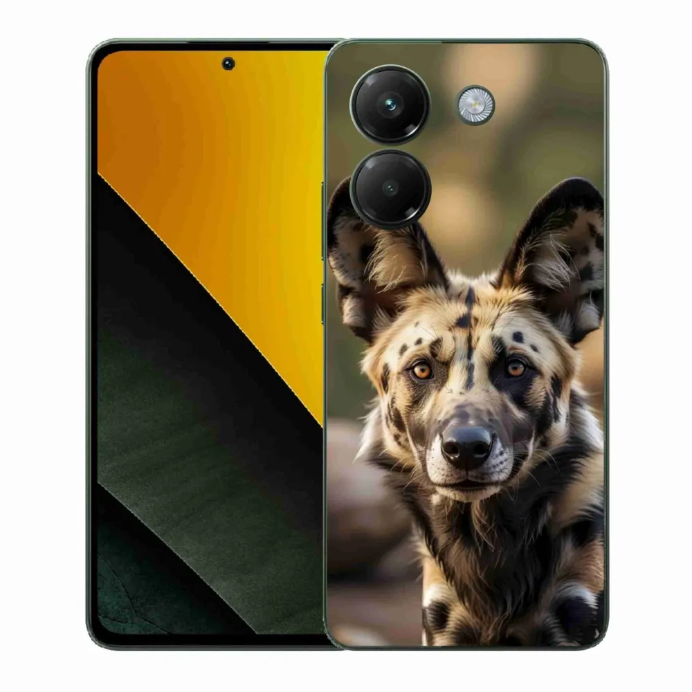 Psí pouzdro na Xiaomi Poco M7 Pro 5G - africký divoký pes poskytuje všechny výhody gelových obalů, a to v zajímavém designu.