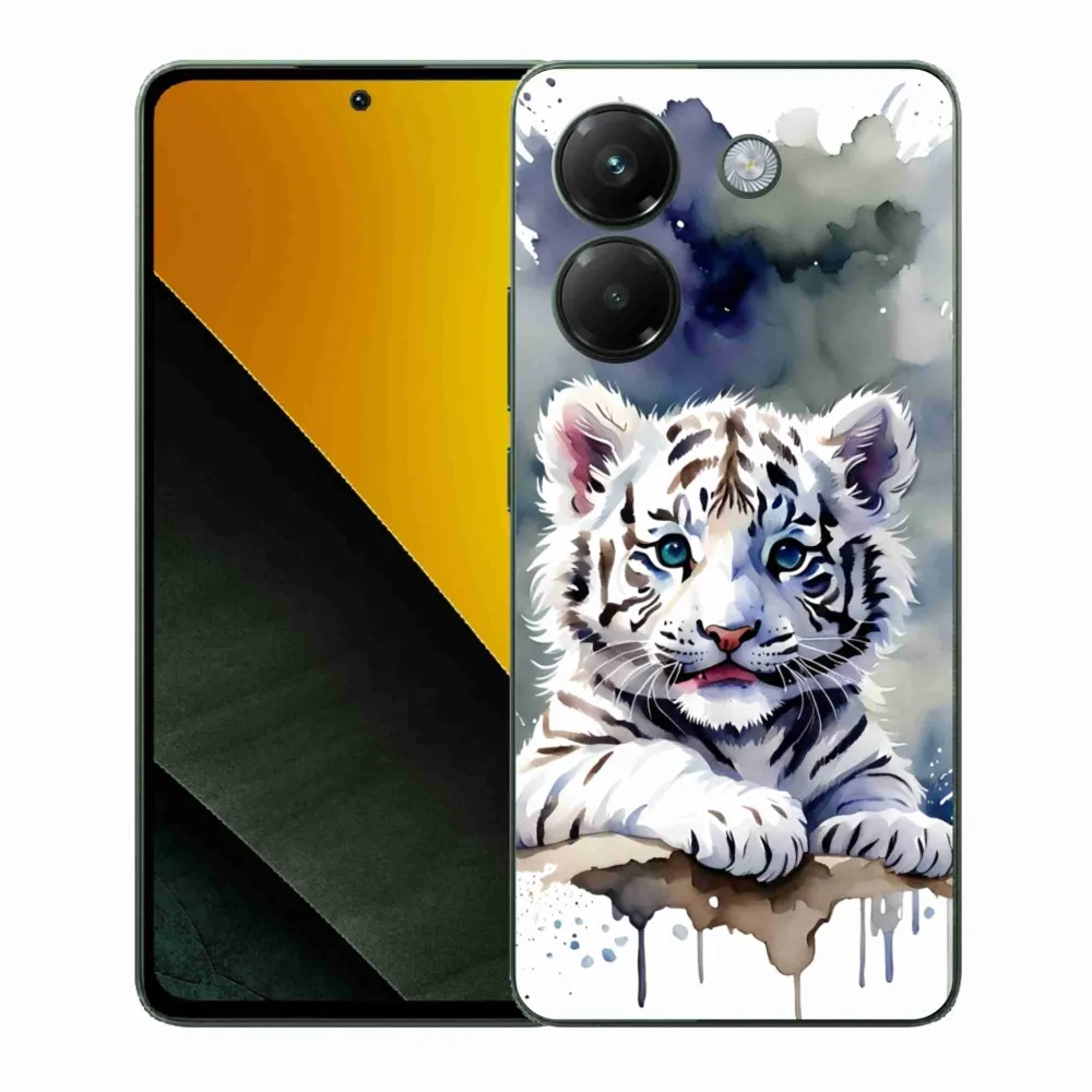 Psí pouzdro na Xiaomi Poco M7 Pro - mládě bílého tygra poskytuje všechny výhody gelových obalů, a to v zajímavém designu.