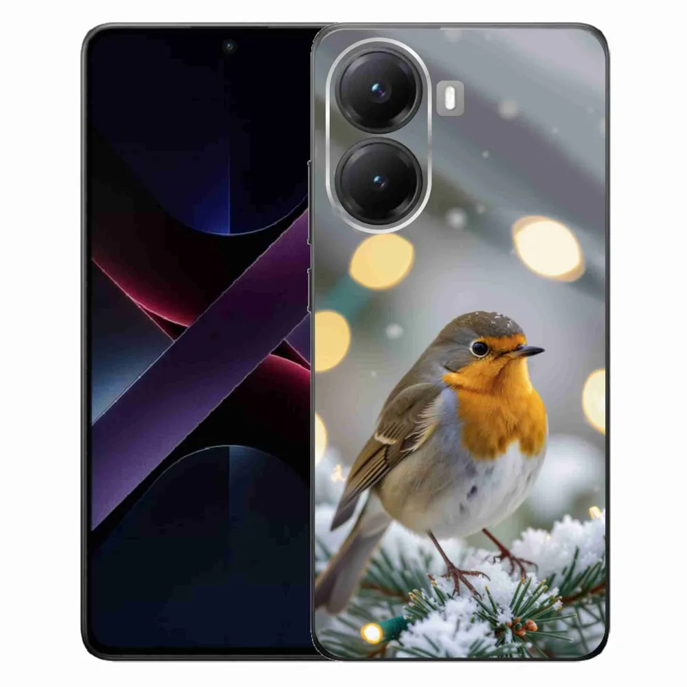 Ptačí pouzdro na Xiaomi Poco X7 Pro 5G - červenka v zimě poskytuje všechny výhody gelových obalů, a to v zajímavém designu.