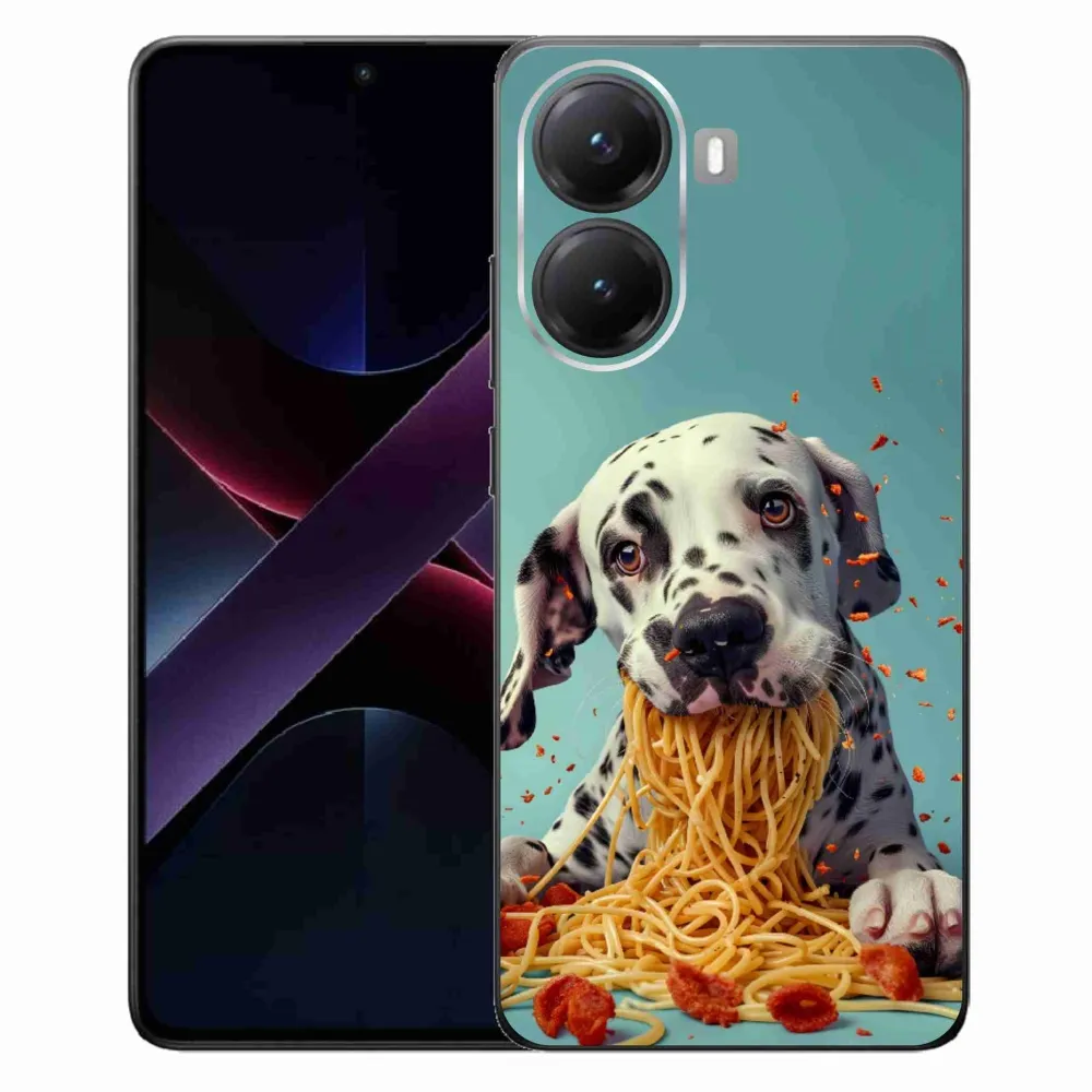 Psí pouzdro na Xiaomi Poco X7 Pro 5G - dalmatin a špagety poskytuje všechny výhody gelových obalů, a to v zajímavém designu.