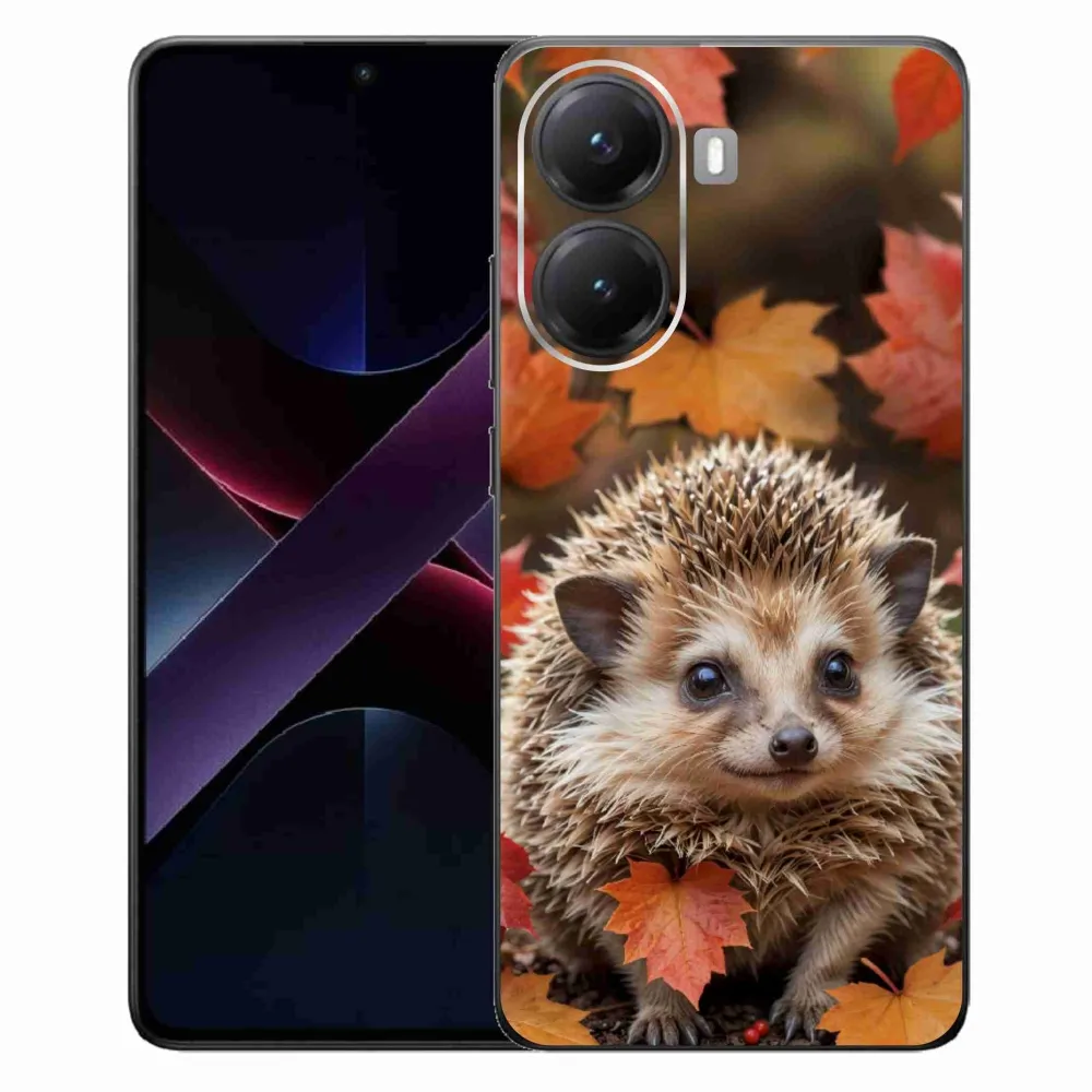 Zvířecí pouzdro na Xiaomi Poco X7 Pro 5G - ježek v listí poskytuje všechny výhody gelových obalů, a to v zajímavém designu.