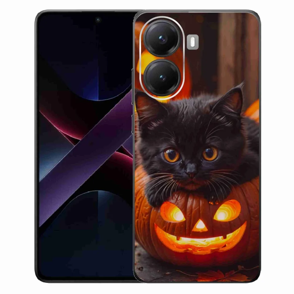 Kočičí pouzdro na Xiaomi Poco X7 Pro 5G - kotě a dýně poskytuje všechny výhody gelových obalů, a to v zajímavém designu.