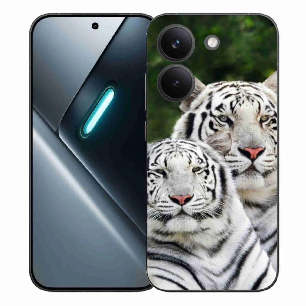 Pouzdro se šelmou na Xiaomi Poco X8 Pro - bílí tygři poskytuje všechny výhody gelových krytů, a to v zajímavém designu.