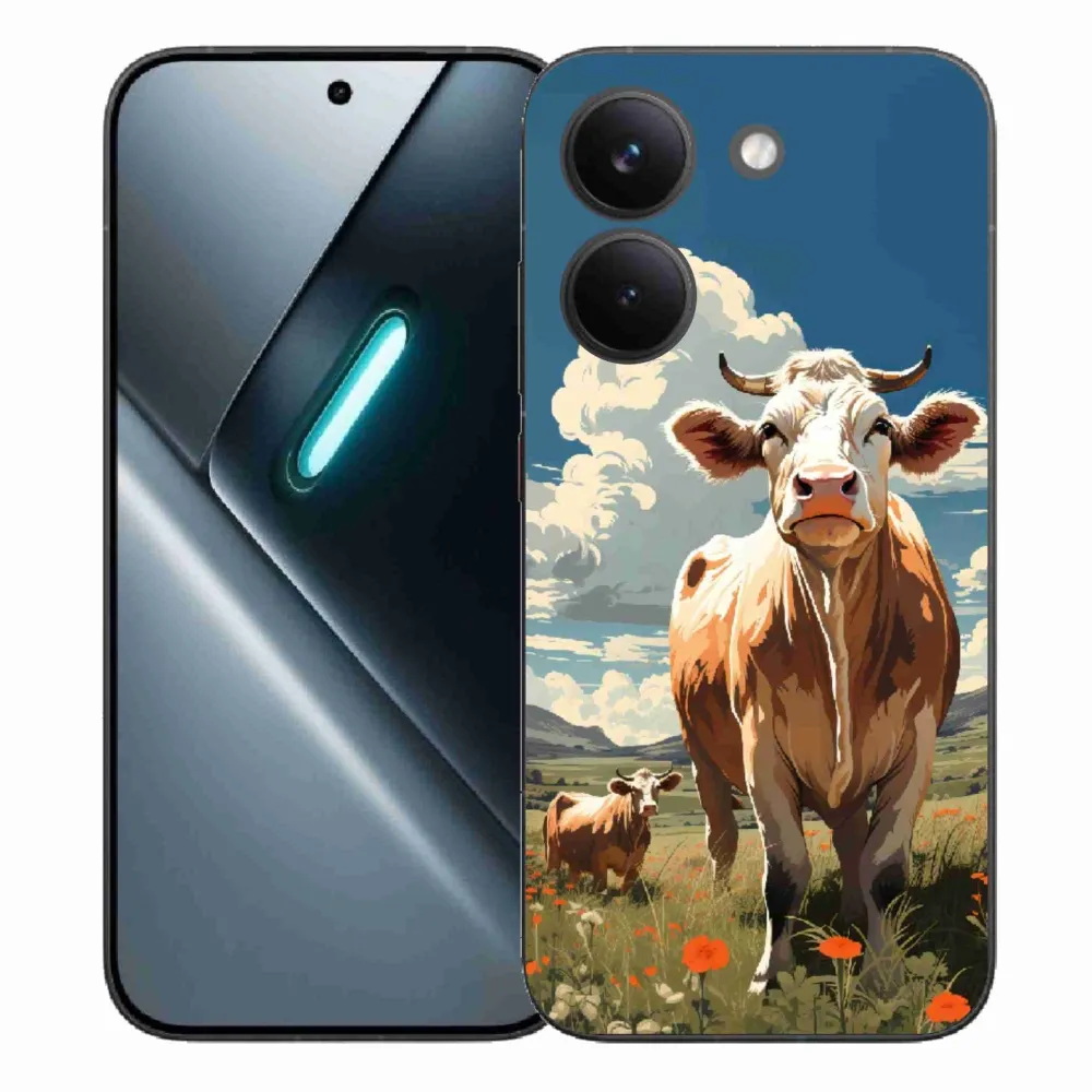 Zvířecí pouzdro na Xiaomi Poco X8 Pro - krávy na louce poskytuje všechny výhody gelových obalů, a to v zajímavém designu.