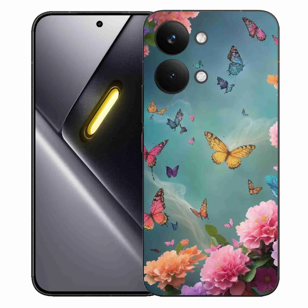 Květinové pouzdro na Xiaomi Poco X8 Pro Max - barevné květy a motýli poskytuje všechny výhody gelových obalů, a to v zajímavém designu.