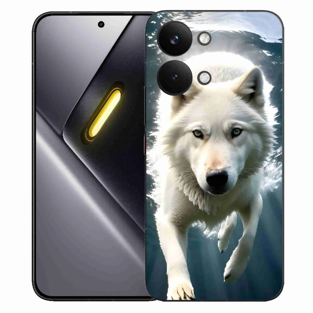 Pouzdro se šelmou na Xiaomi Poco X8 Pro Max - bílý vlk poskytuje všechny výhody gelových krytů, a to v zajímavém designu.