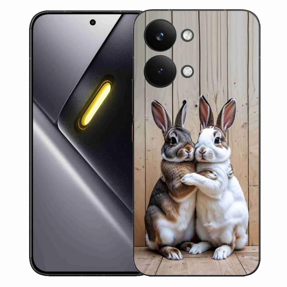 Zvířecí pouzdro na Xiaomi Poco X8 Pro Max - králičí pár poskytuje všechny výhody gelových obalů, a to v zajímavém designu.