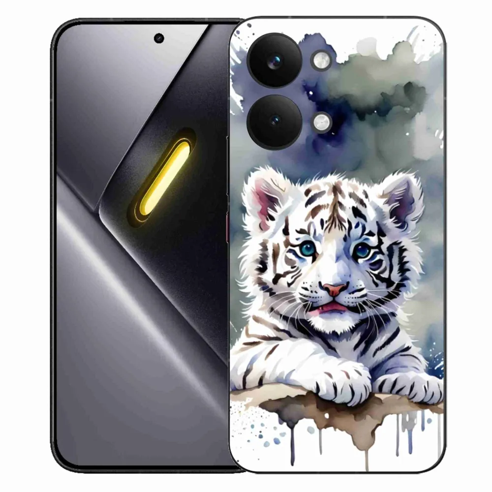 Psí pouzdro na Xiaomi Poco X8 Pro Max - mládě bílého tygra poskytuje všechny výhody gelových obalů, a to v zajímavém designu.