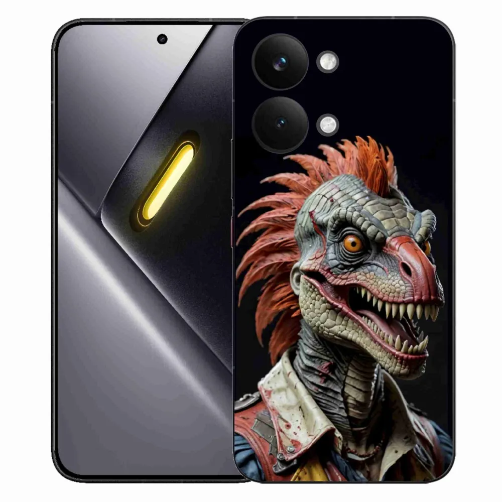 Pouzdro s motivem punk dinosaura na Xiaomi Poco X8 Pro Max poskytuje všechny výhody gelových obalů, a to v zajímavém designu.