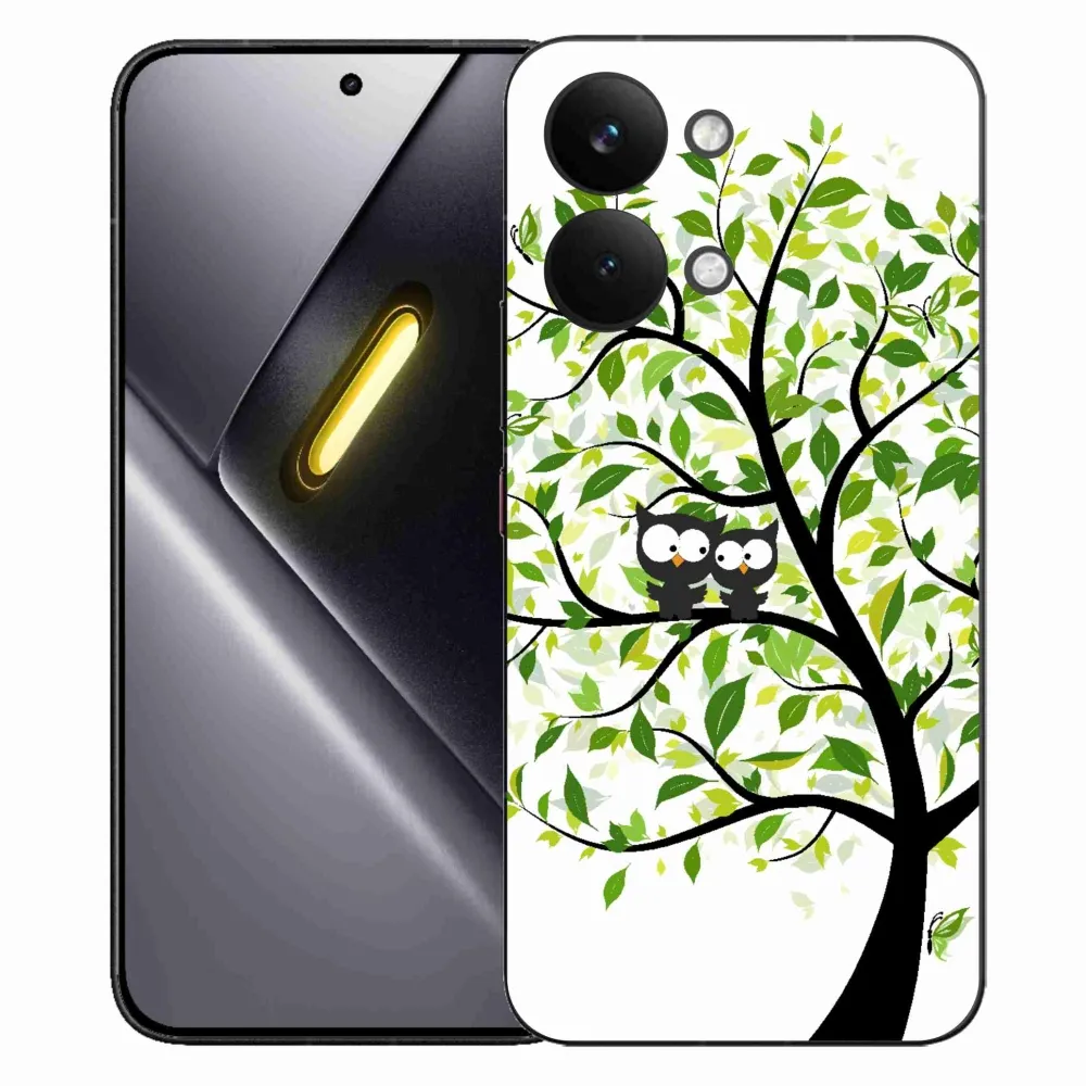 Zvířecí pouzdro na Xiaomi Poco X8 Pro Max - sovičky na stromě poskytuje všechny výhody gelových obalů, a to v zajímavém designu.