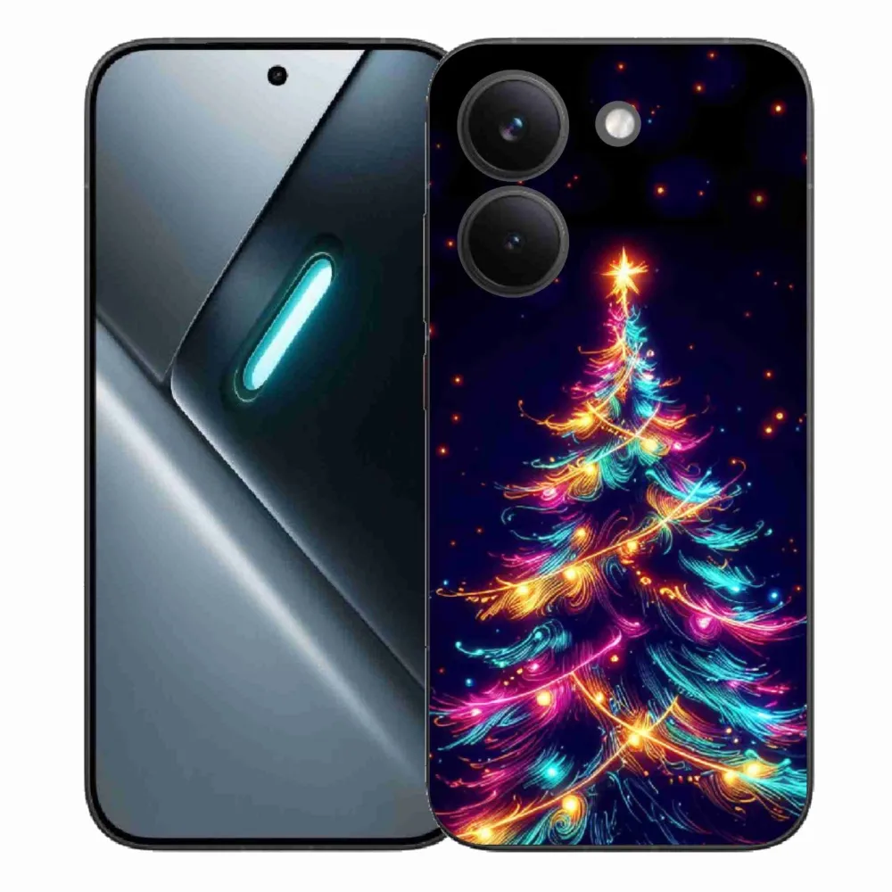Vánoční pouzdro na Xiaomi Poco X8 Pro - neonový vánoční stromek poskytuje všechny výhody gelových obalů, a to v zajímavém designu.