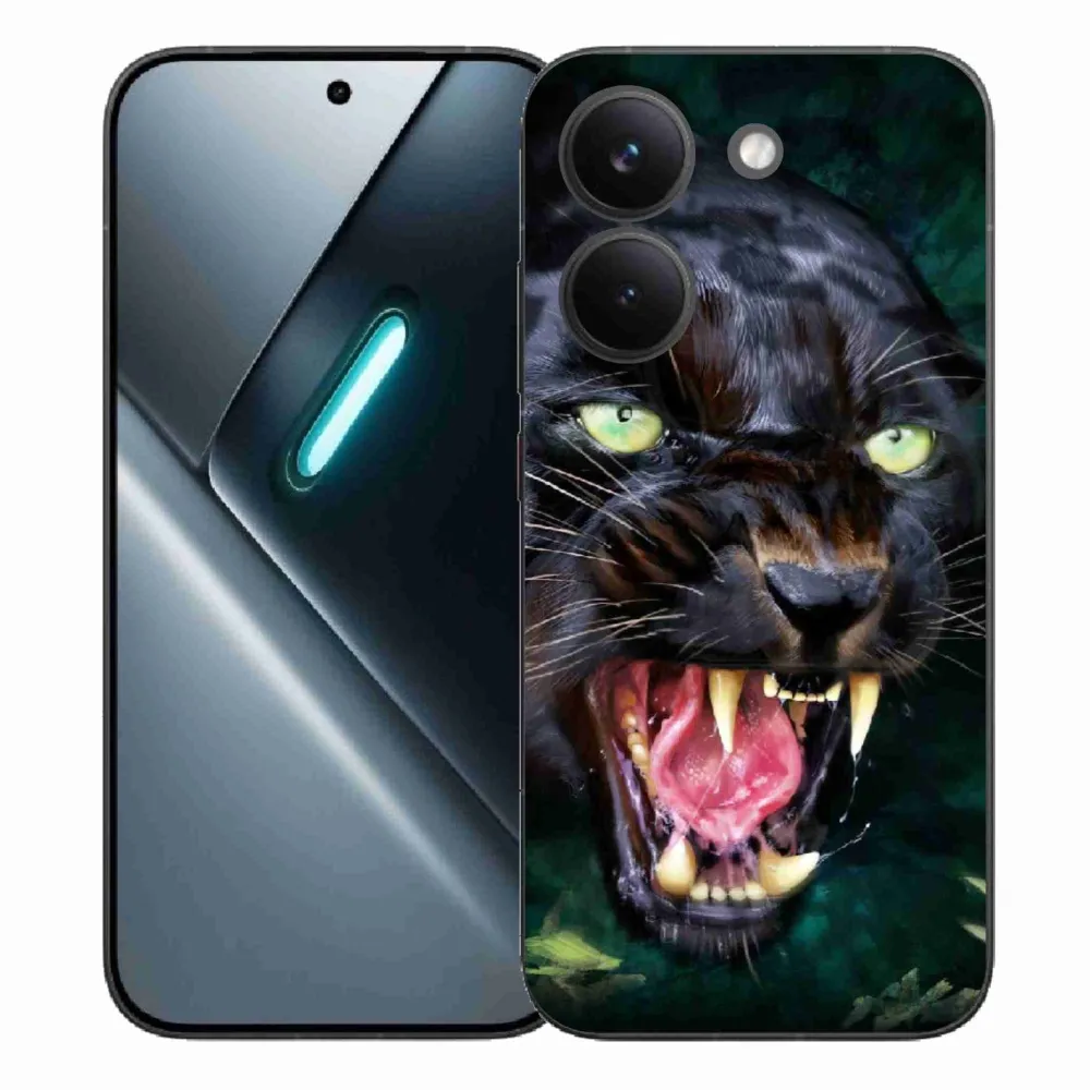 Pouzdro se šelmou na Xiaomi Poco X8 Pro - rozzuřený černý panter poskytuje všechny výhody gelových krytů, a to v zajímavém designu.