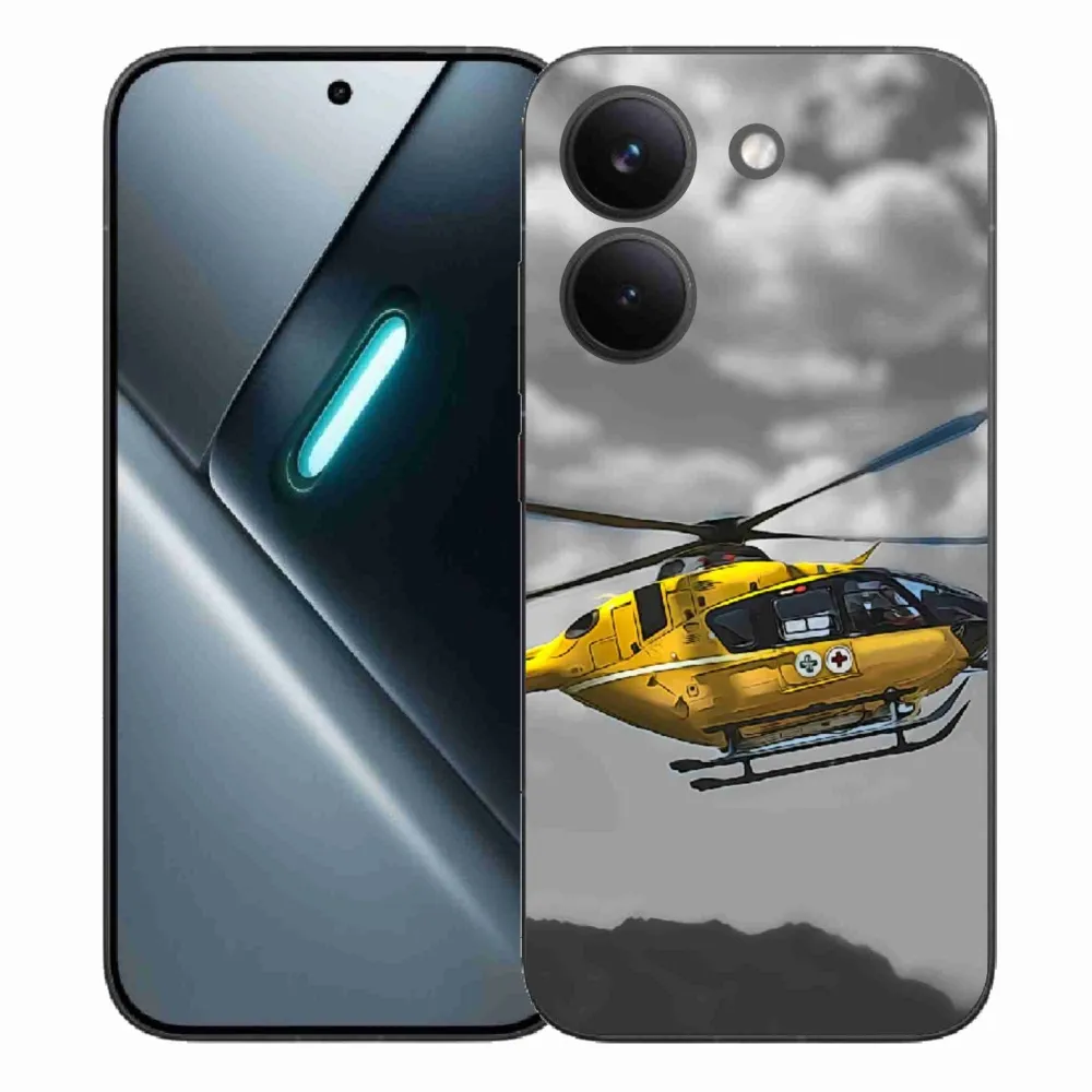 Pouzdro s motivem žluté helikoptéry na Xiaomi Poco X8 Pro poskytuje všechny výhody gelových krytů, a to v zajímavém designu.