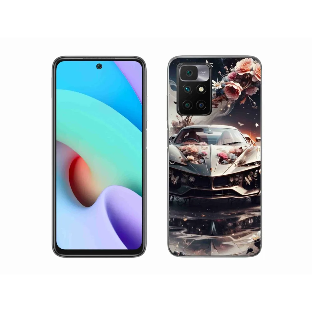 Pružný gelový obal mmCase s obrázkem na Xiaomi Redmi 10/Redmi 10 (2022) - květinový sportovní vůz