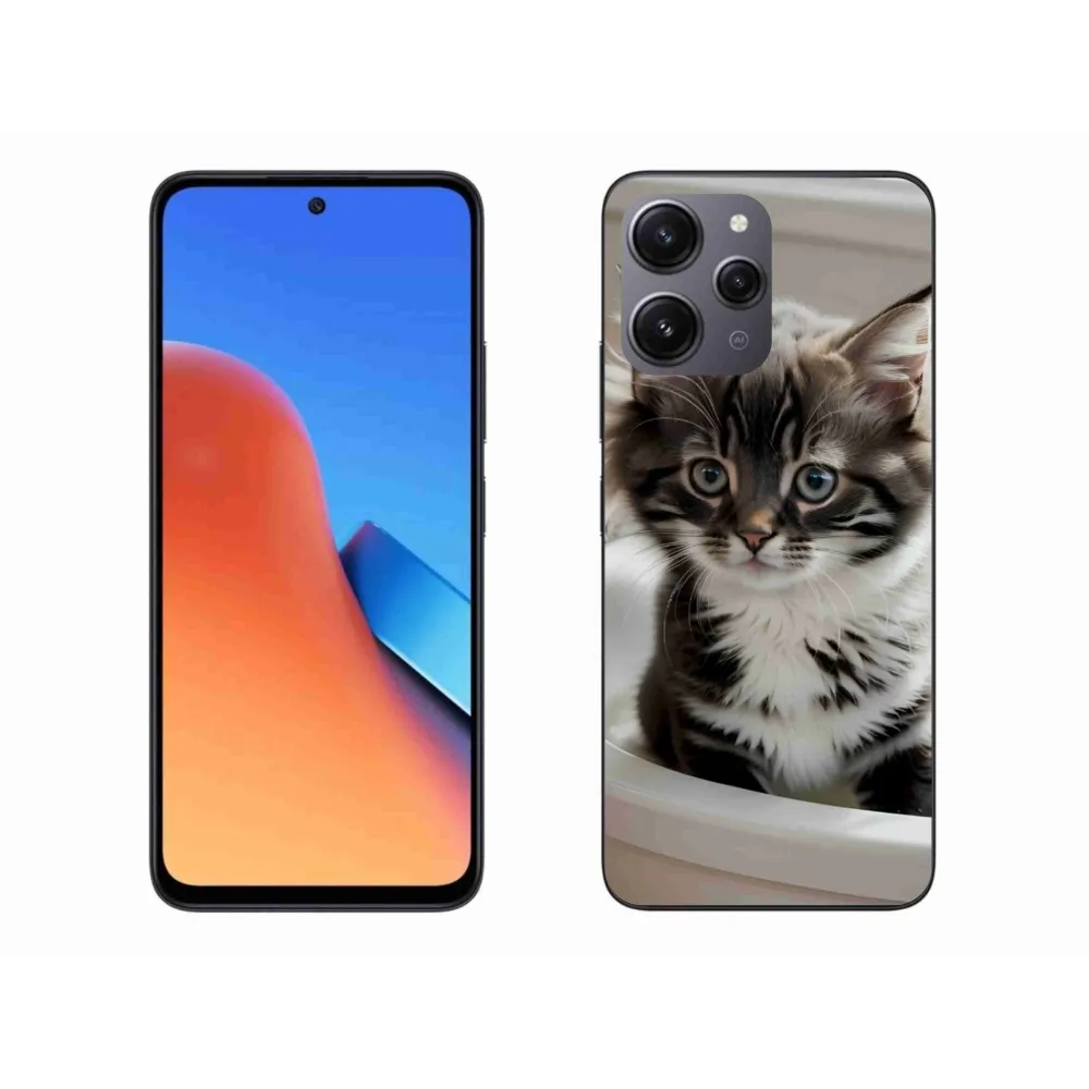 Kočičí pouzdro na Xiaomi Redmi 12 - zvědavé kotě poskytuje všechny výhody gelových obalů, a to v zajímavém designu.