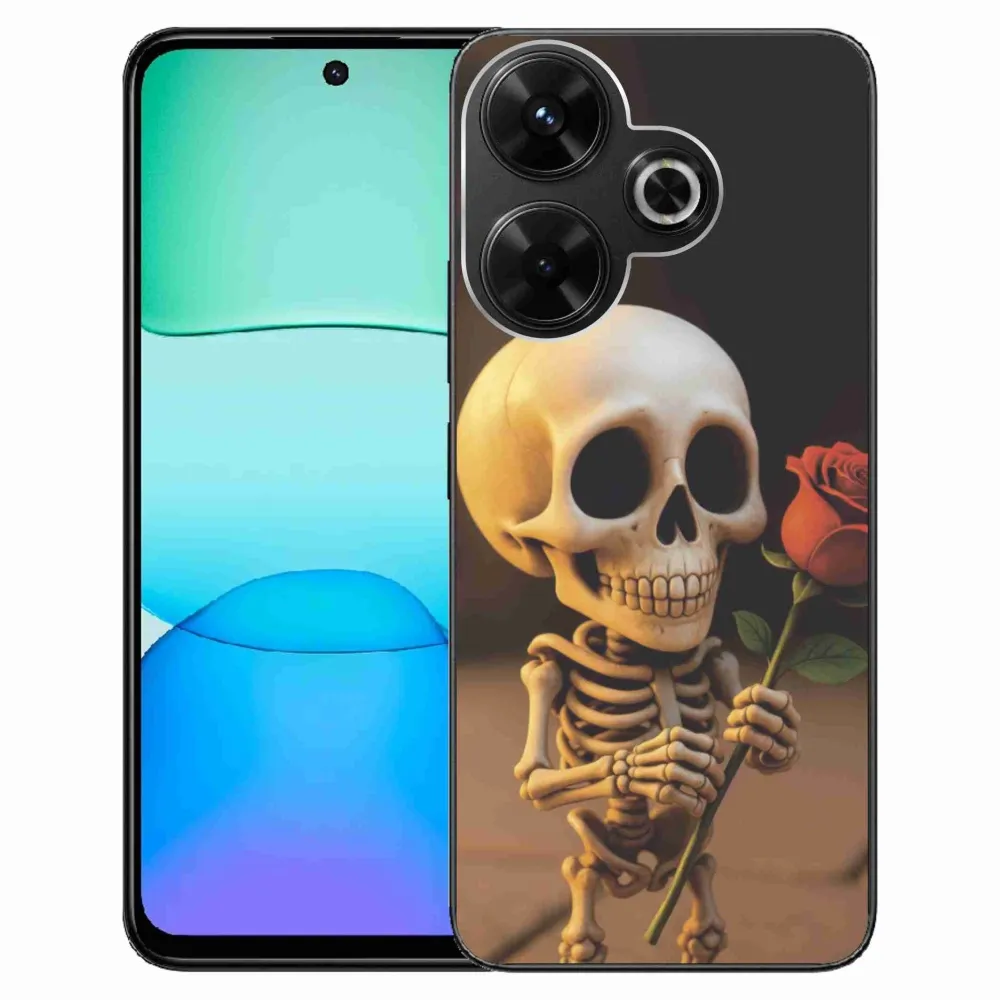 Pouzdro na Xiaomi Redmi 13 4G/Poco M6 4G - kostlivec s růží poskytuje všechny výhody gelových obalů, a to v zajímavém designu.