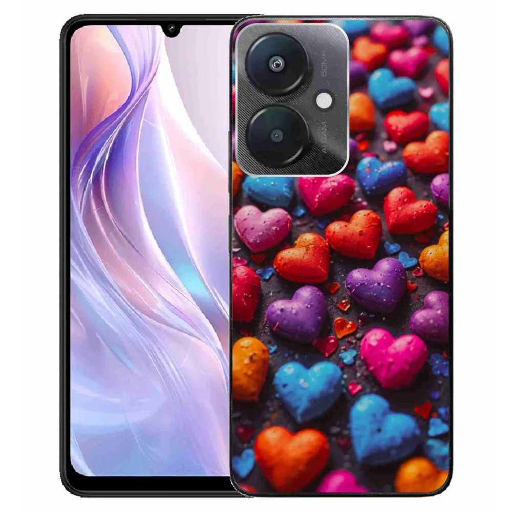Pouzdro na Xiaomi Redmi 13C 5G - barevná srdce poskytuje všechny výhody gelových obalů, a to v zajímavém designu.