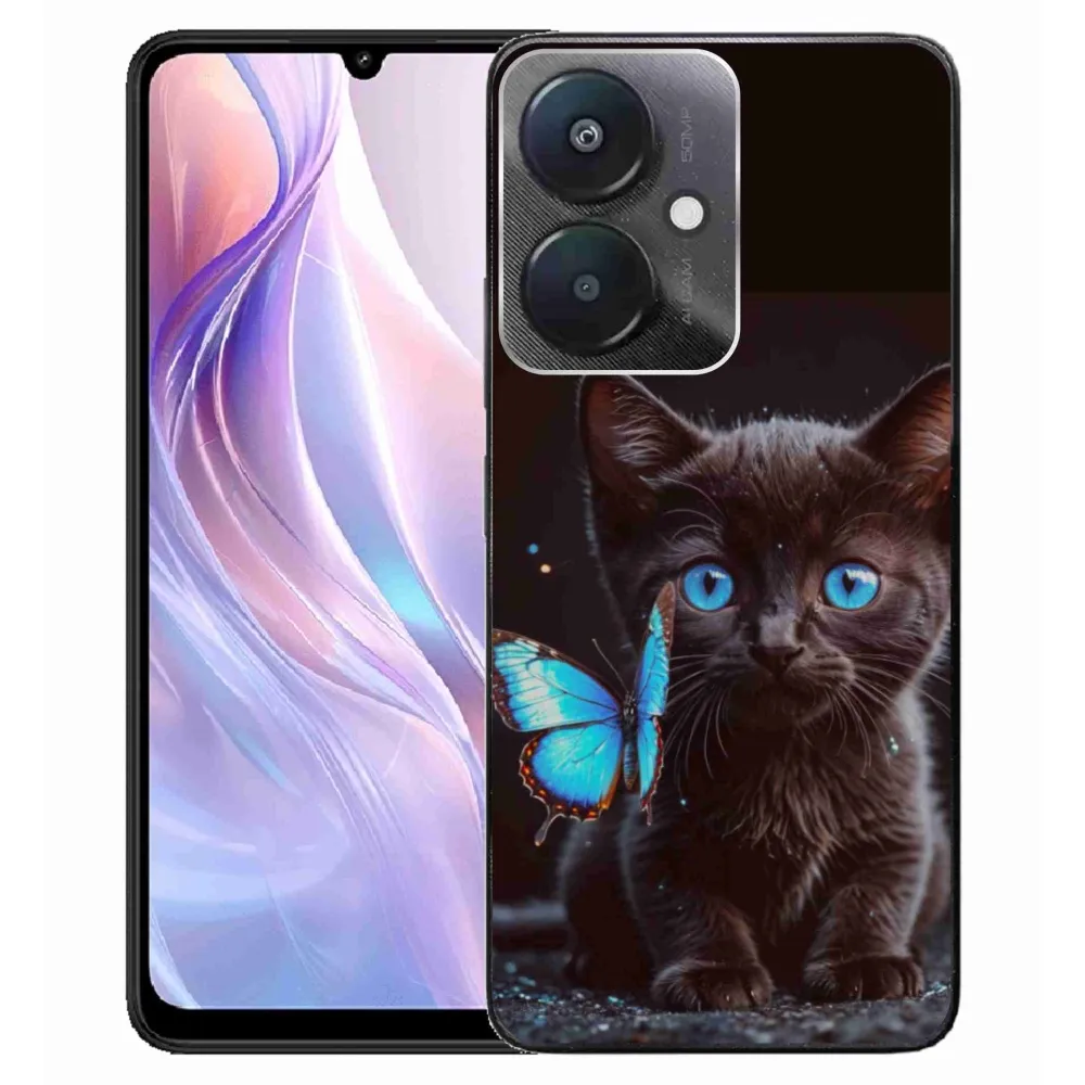 Pružný gelový obal mmCase s obrázkem na Xiaomi Redmi 13C 5G - černé kotě 3