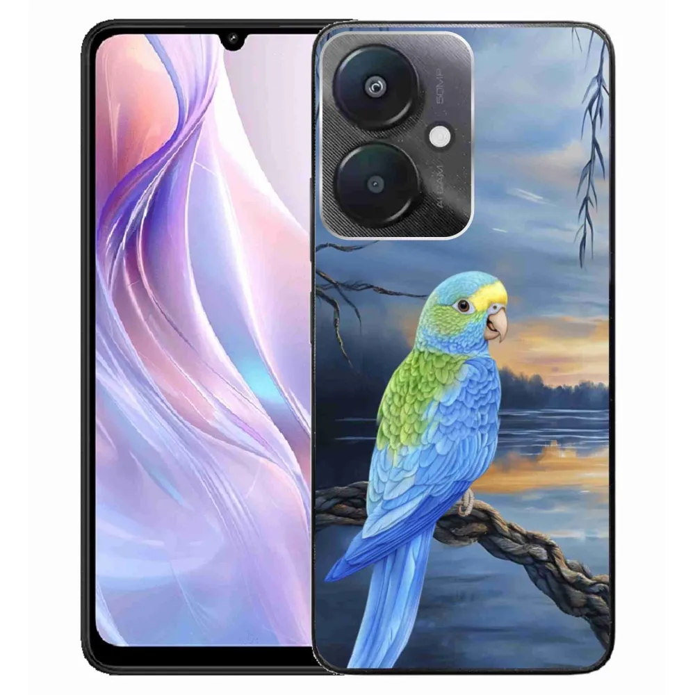 Zvířecí pouzdro na Xiaomi Redmi 13C 5G - modrý papoušek poskytuje všechny výhody gelových obalů, a to v zajímavém designu.