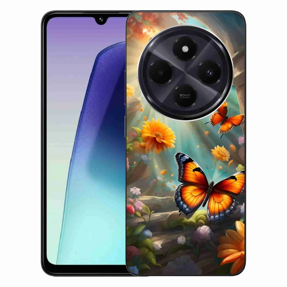 Pružný gelový obal mmCase s obrázkem na Xiaomi Redmi 14C/Poco C75 - motýlí zahrada 2