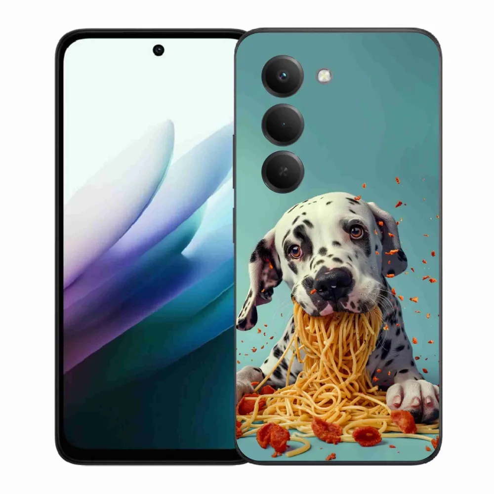 Psí pouzdro na Xiaomi Redmi 15 4G/5G 171mm - dalmatin a špagety poskytuje všechny výhody gelových obalů, a to v zajímavém designu.