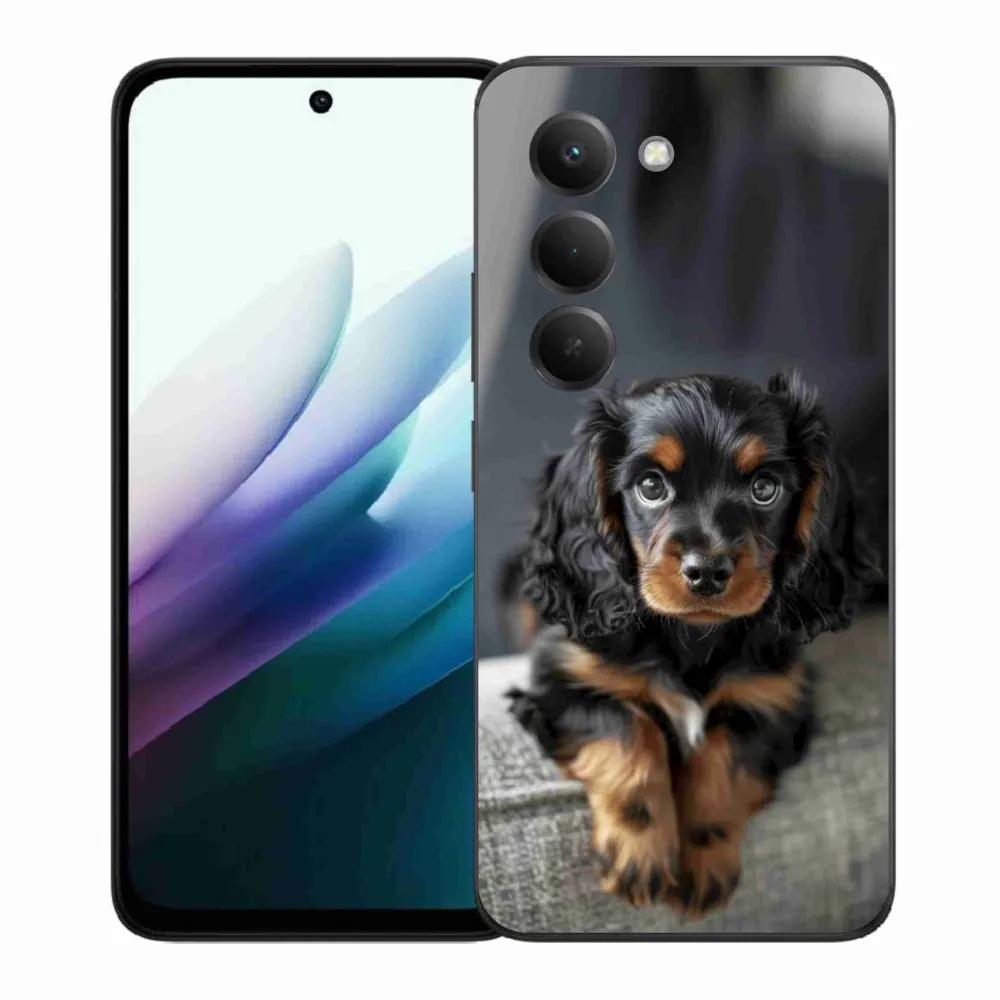 Psí pouzdro na Xiaomi Redmi 15 4G/5G 171mm - roztomilý dlouhosrstý jezevčík poskytuje všechny výhody gelových obalů, a to v zajímavém designu.
