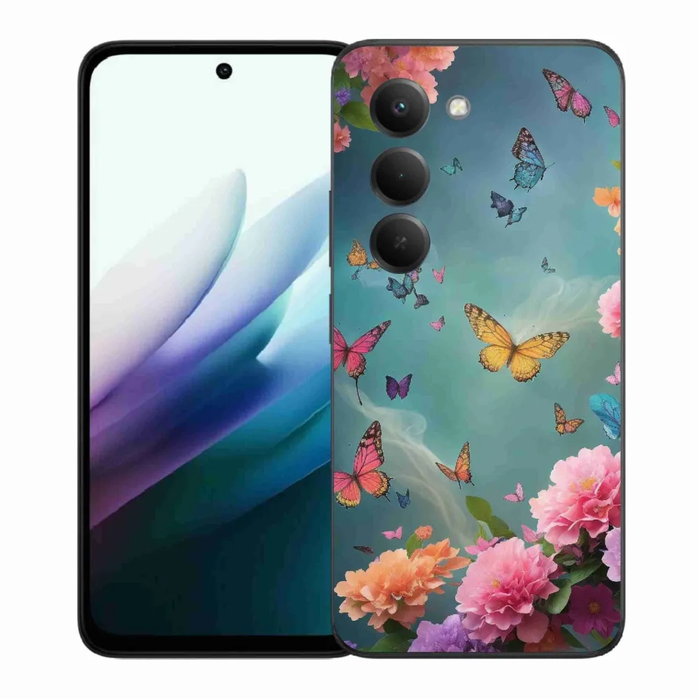 Květinové pouzdro na Xiaomi Redmi 15 4G/5G (171mm) - barevné květy a motýli poskytuje všechny výhody gelových obalů, a to v zajímavém designu.