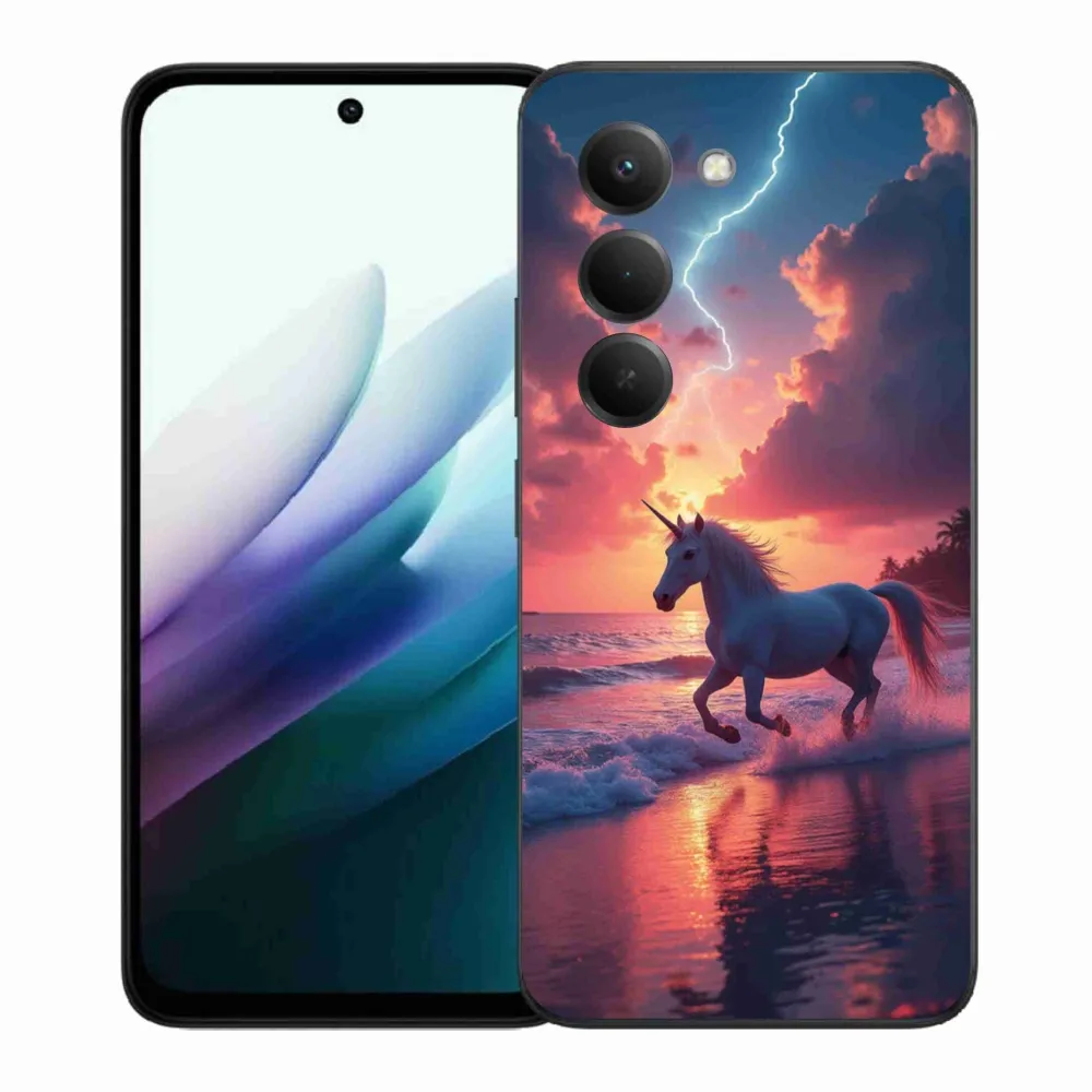 Pouzdro s motivem koně na Xiaomi Redmi 15 4G/5G (171mm) - jednorožec na pláži poskytuje všechny výhody gelových krytů, a to v zajímavém designu.