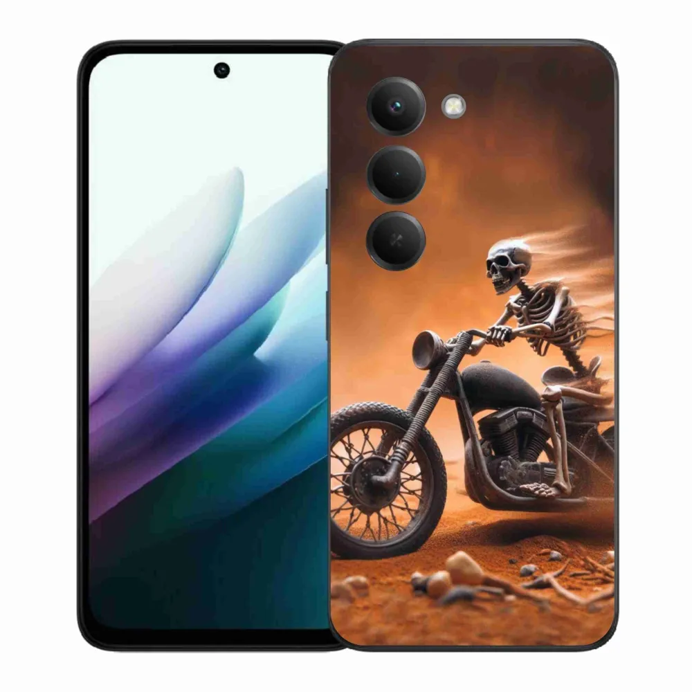 Pouzdro s motivem kostry na motorce na Xiaomi Redmi 15 4G/5G (171mm) poskytuje všechny výhody gelových krytů, a to v zajímavém designu.
