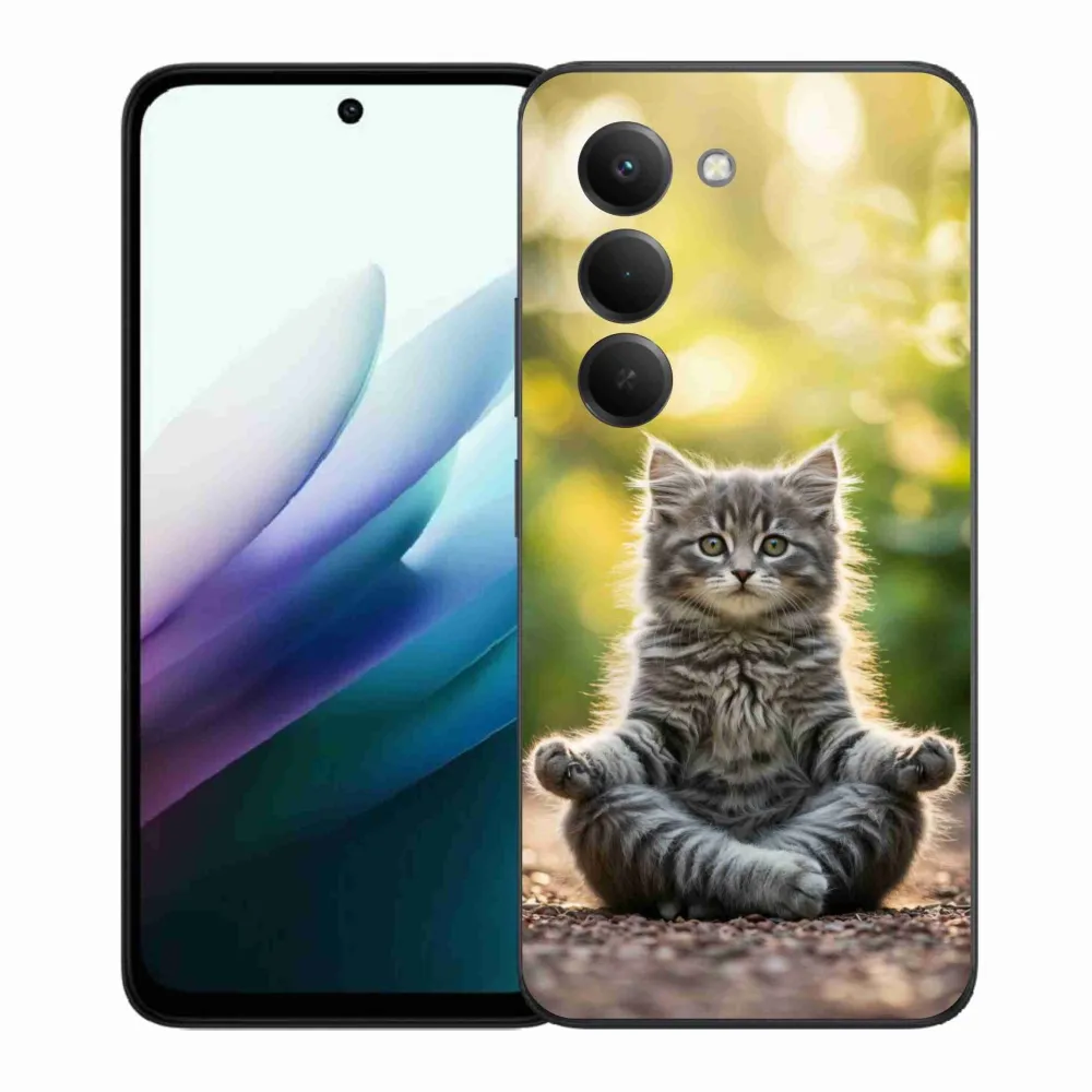 Kočičí pouzdro na Xiaomi Redmi 15 4G/5G (171mm) - meditující kotě poskytuje všechny výhody gelových obalů, a to v zajímavém designu.