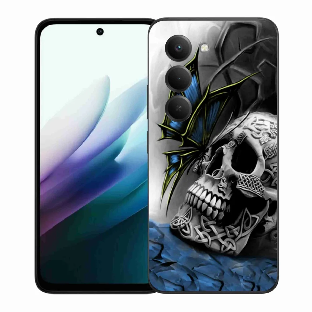 Gelový kryt mmCase na Xiaomi Redmi 15 4G/5G (171mm) - motýl a lebka