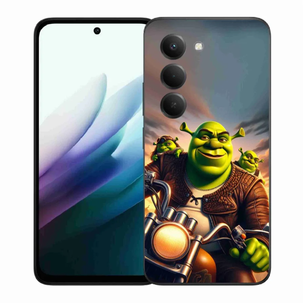 Pouzdro s dětským motivem shrek na motorce na Xiaomi Redmi 15 4G/5G (171mm) poskytuje všechny výhody gelových obalů, a to v zajímavém designu.