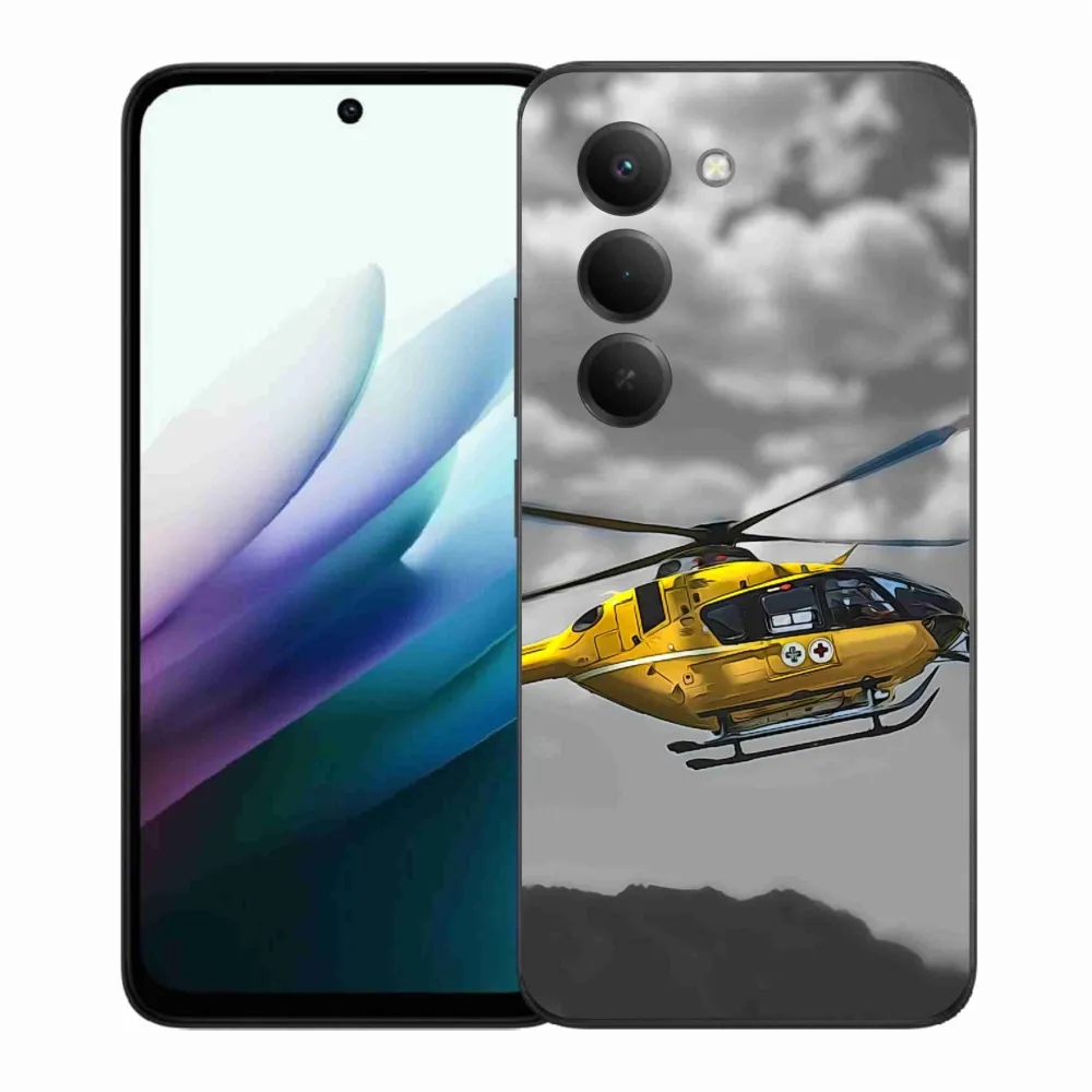 Pouzdro s motivem žluté helikoptéry na Xiaomi Redmi 15 4G/5G (171mm) poskytuje všechny výhody gelových krytů, a to v zajímavém designu.