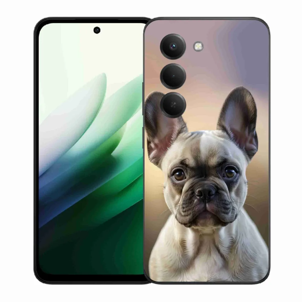 Psí pouzdro na Xiaomi Redmi 15 5G 169mm - roztomilý francouzský buldoček poskytuje všechny výhody gelových obalů, a to v zajímavém designu.