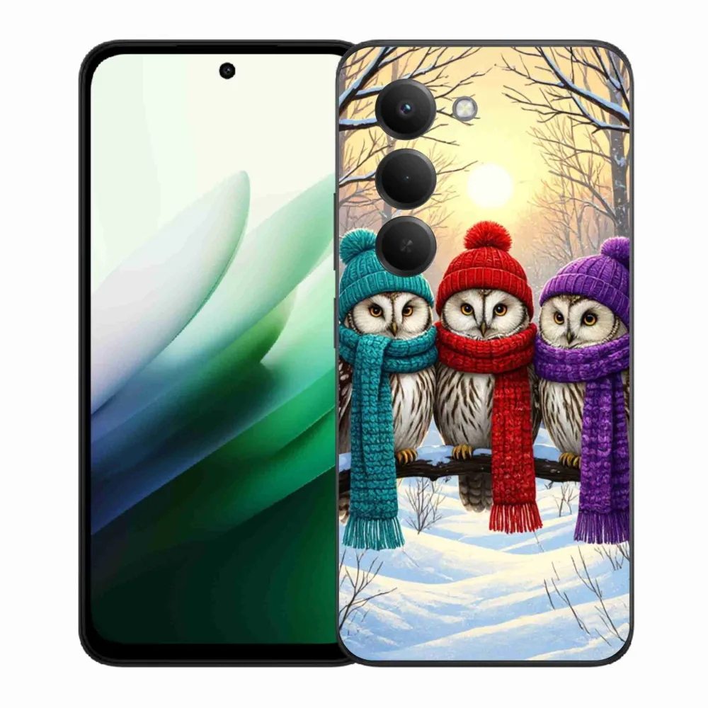Vánoční pouzdro na Xiaomi Redmi 15 5G (169mm) - soví přátelé poskytuje všechny výhody gelových obalů, a to v zajímavém designu.