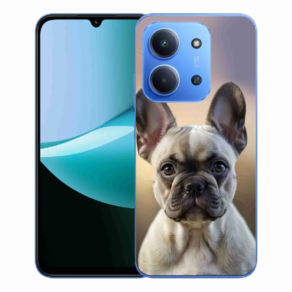 Psí pouzdro na Xiaomi Redmi 15C 173mm - roztomilý francouzský buldoček poskytuje všechny výhody gelových obalů, a to v zajímavém designu.