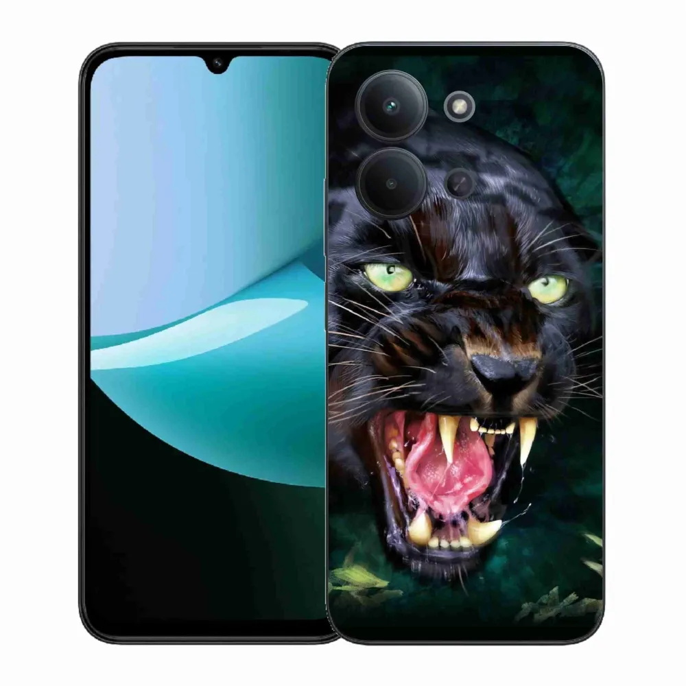 Pouzdro se šelmou na Xiaomi Redmi 15C 4G (171mm)/Poco C85 4G (171mm) - rozzuřený černý panter poskytuje všechny výhody gelových krytů, a to v zajímavém designu.