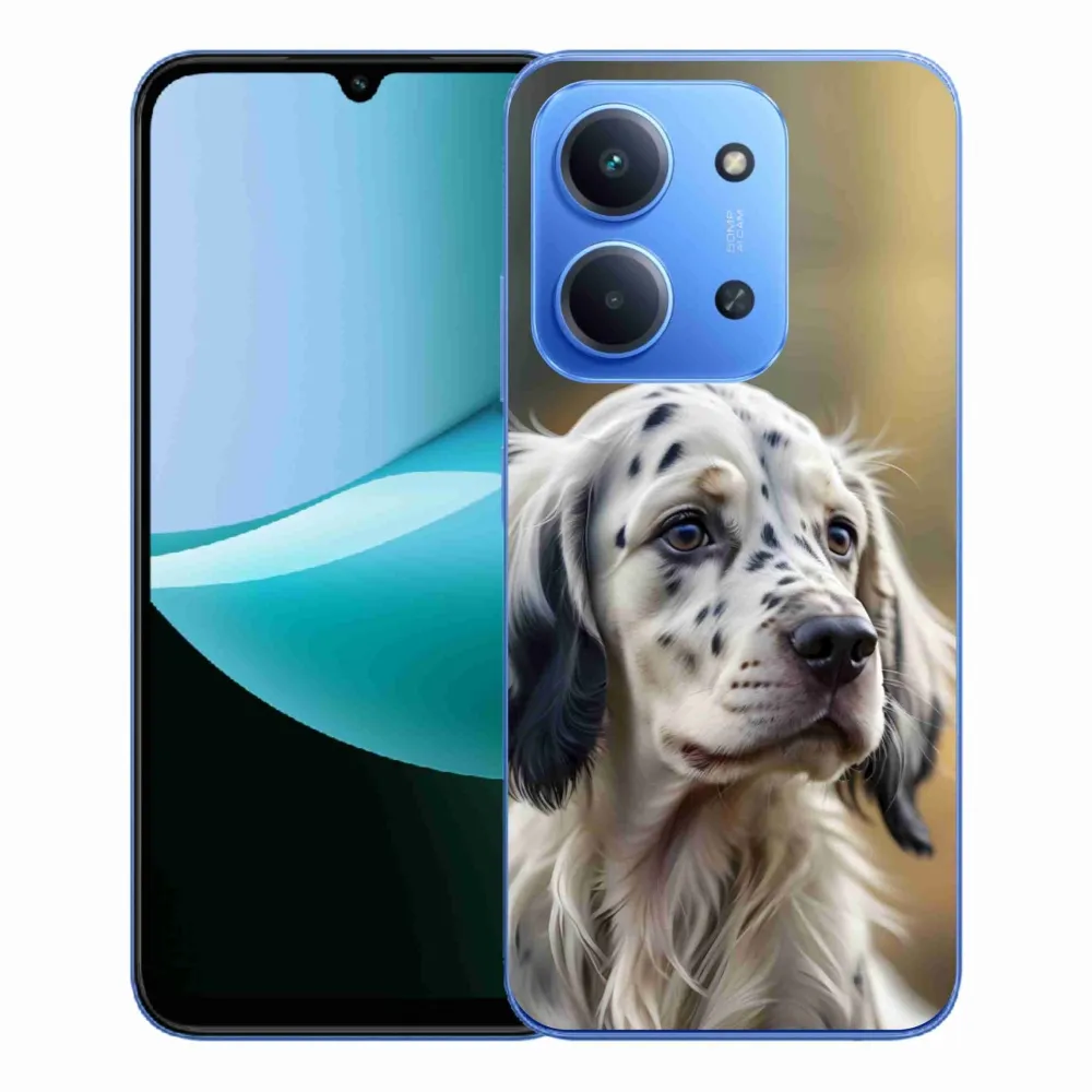 Psí pouzdro na Xiaomi Redmi 15C 4G/5G (173mm) - anglický setr poskytuje všechny výhody gelových obalů, a to v zajímavém designu.