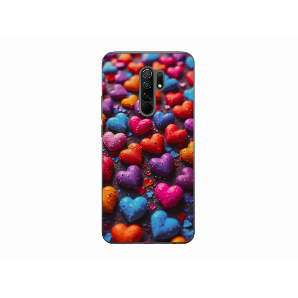 Pružný gelový obal mmCase s obrázkem na Xiaomi Redmi 9 - barevná srdce