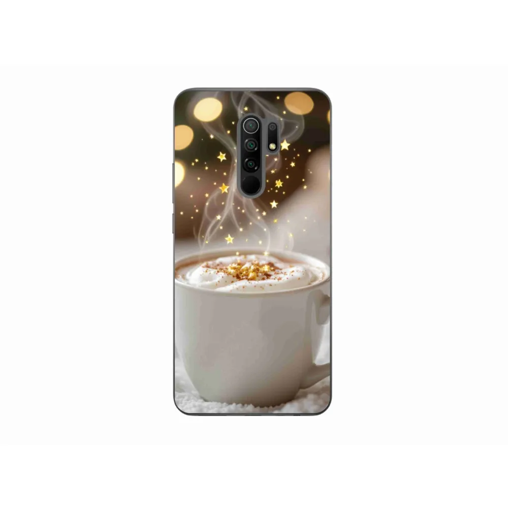 Vánoční pouzdro na Xiaomi Redmi 9 - vánoční horký nápoj poskytuje všechny výhody gelových obalů, a to v zajímavém designu.