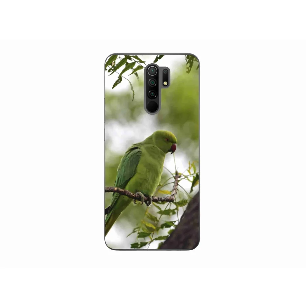Ptačí pouzdro na Xiaomi Redmi 9 - zelený papoušek poskytuje všechny výhody gelových obalů, a to v zajímavém designu.
