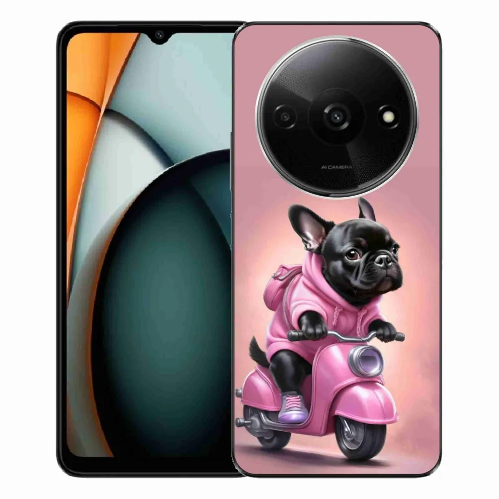 Psí pouzdro na Xiaomi Redmi A3 - francouzský buldoček na skútru poskytuje všechny výhody gelových obalů, a to v zajímavém designu.