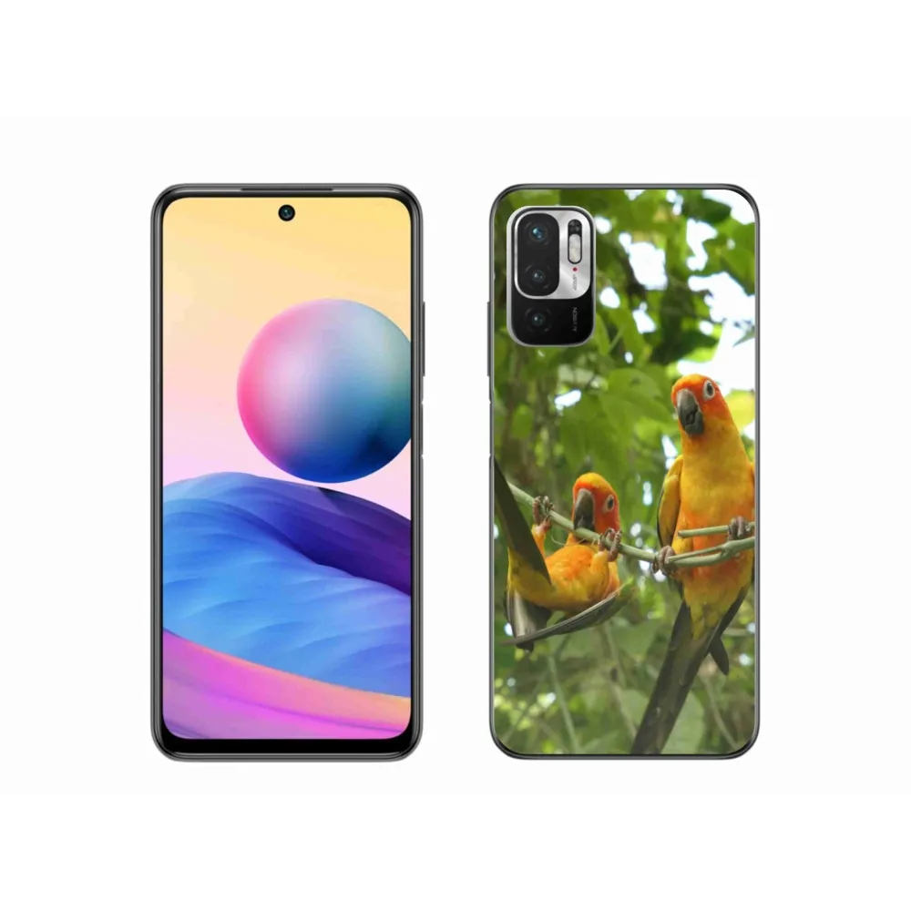 Ptačí pouzdro na Xiaomi Redmi Note 10 5G - papoušci aratingy poskytuje všechny výhody gelových obalů, a to v zajímavém designu.