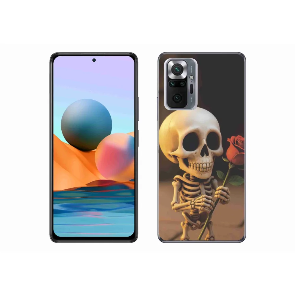 Pouzdro na Xiaomi Redmi Note 10 Pro - kostlivec s růží poskytuje všechny výhody gelových obalů, a to v zajímavém designu.