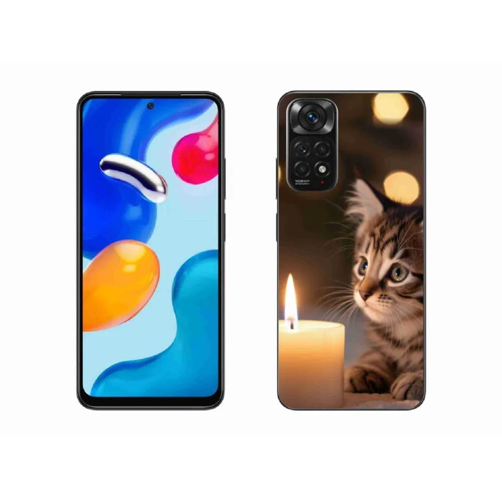 Pružný gelový obal mmCase s obrázkem na Xiaomi Redmi Note 11S - kotě a svíčka